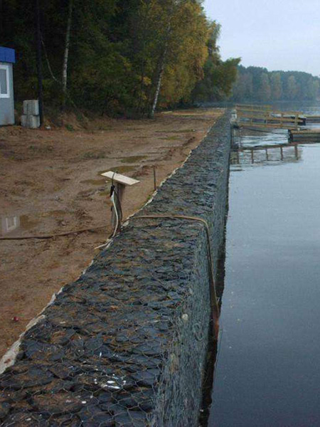 預(yù)先填好石塊的生態(tài)格賓網(wǎng)放在建筑物的下面和四周,起到支撐作用,為防護(hù)創(chuàng)造適宜條件。根據(jù)此工程,生態(tài)格網(wǎng)網(wǎng)墊放在預(yù)先填好的石頭和水下設(shè)施上,來抵御侵蝕。