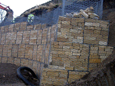 格賓籠是由金屬線材編織的角形網(wǎng)(六角網(wǎng))制成的網(wǎng)箱。石籠網(wǎng)由高抗腐蝕、高強度、具有延展性的低碳鋼絲或者包覆PVC的以上鋼絲使用機械編織而成,使用該網(wǎng)制作而成的箱型結(jié)構(gòu)就是石籠。