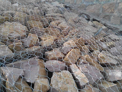 六角網(wǎng)鋪設(shè)護(hù)坡,樹叢和雜草等植物可以穿過鐵絲網(wǎng)生長,不僅能夠固定石塊,更主要的是有利于綠化環(huán)境,用綠色植物來固定土壤,防范山坡石漠化。